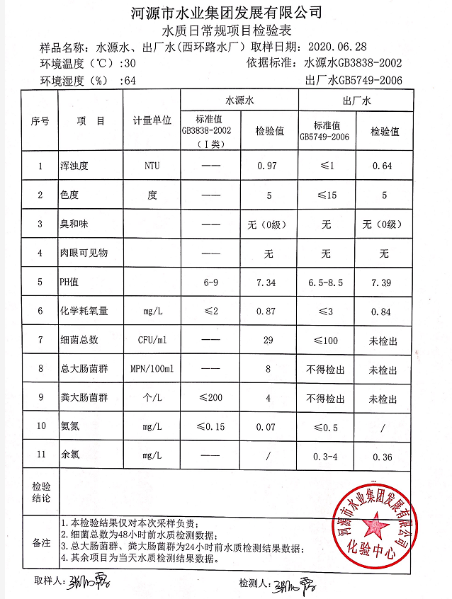 2020年6月28日水質(zhì)檢驗報告