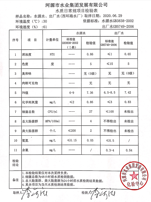 2020年6月29日水質(zhì)檢驗(yàn)報(bào)告