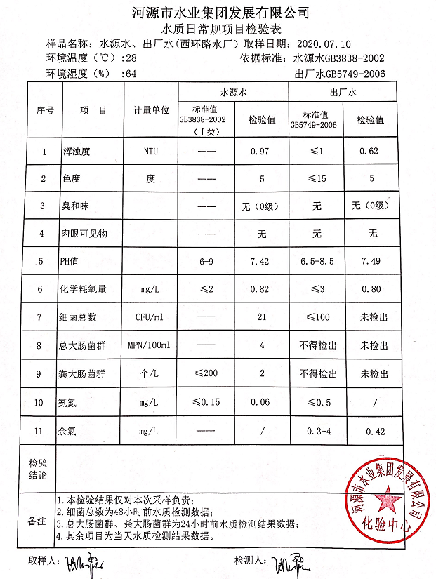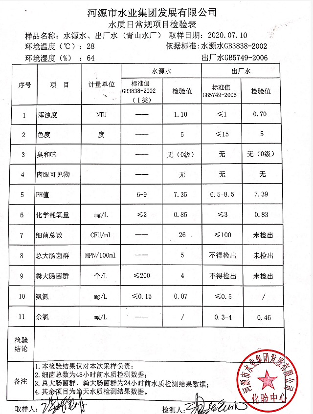 2020年7月10日水質(zhì)檢驗(yàn)報(bào)告