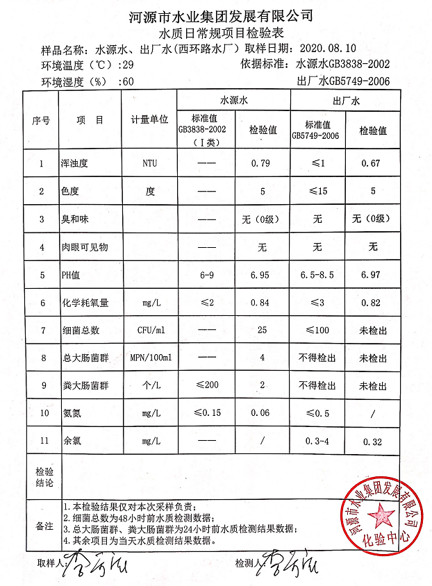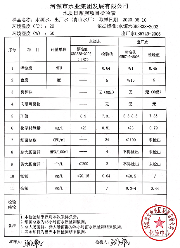 2020年8月10日水質(zhì)檢驗(yàn)報(bào)告
