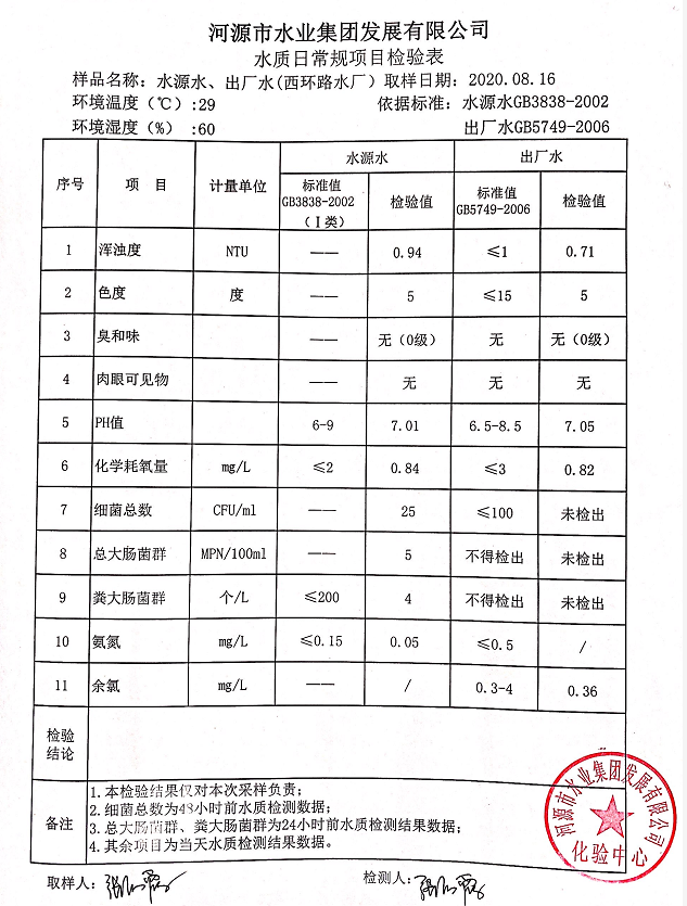2020年8月16日水質(zhì)檢驗(yàn)報(bào)告