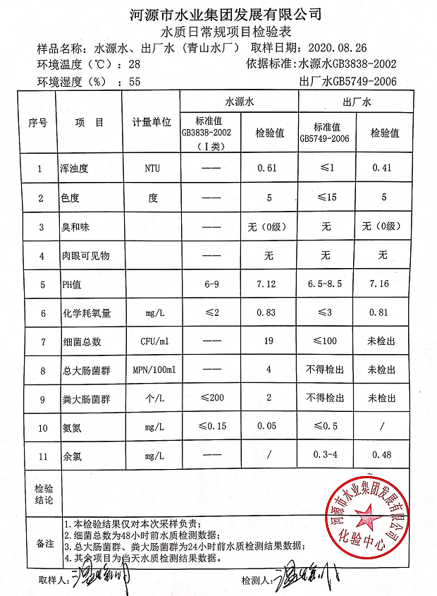 2020年8月26日水質(zhì)檢驗(yàn)報(bào)告