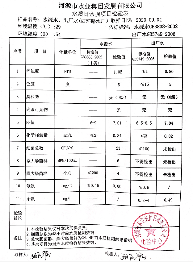 2020年9月4日水質(zhì)檢驗(yàn)報(bào)告