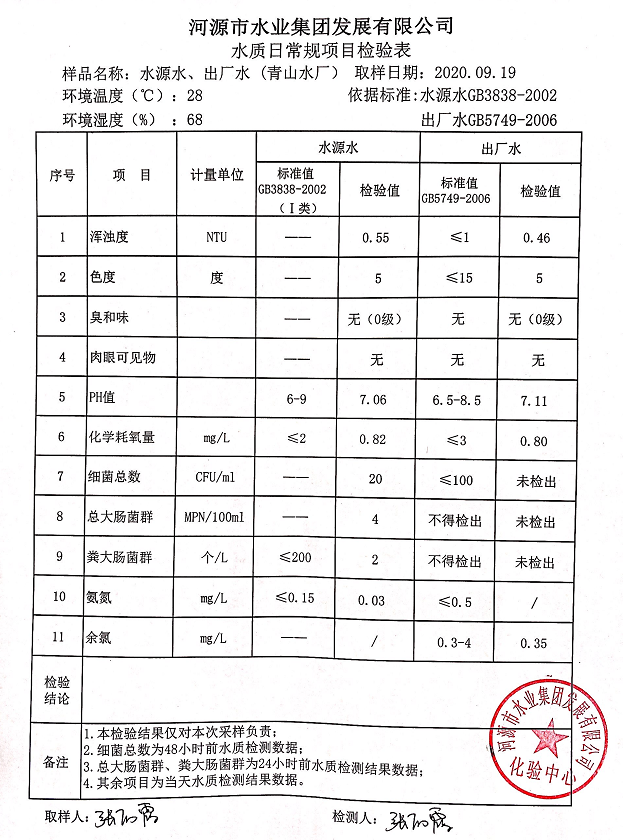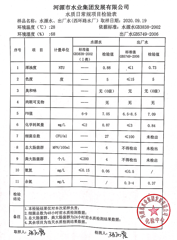 2020年9月19日水質(zhì)檢驗(yàn)報(bào)告