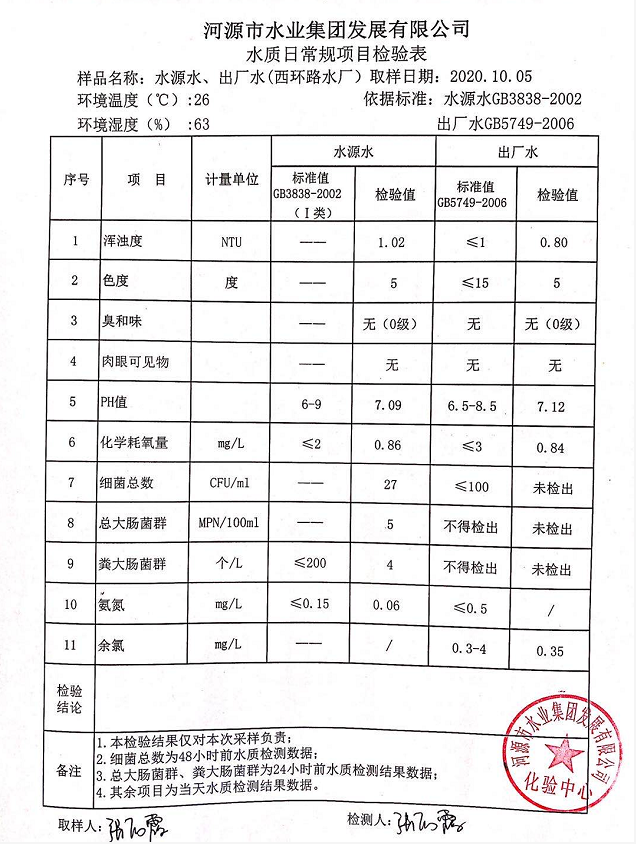 2020年10月5日水質(zhì)檢驗(yàn)報(bào)告