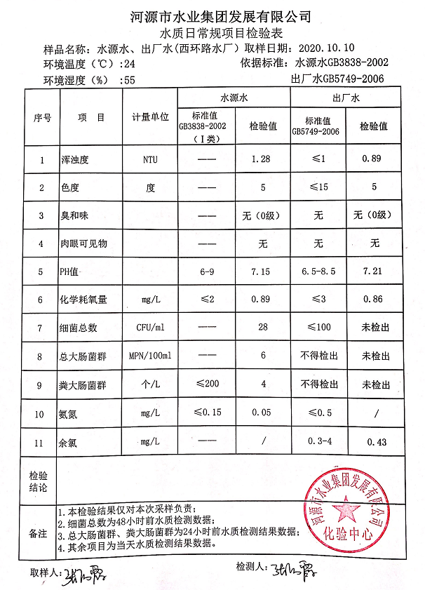 2020年10月10日水質(zhì)檢驗(yàn)報(bào)告