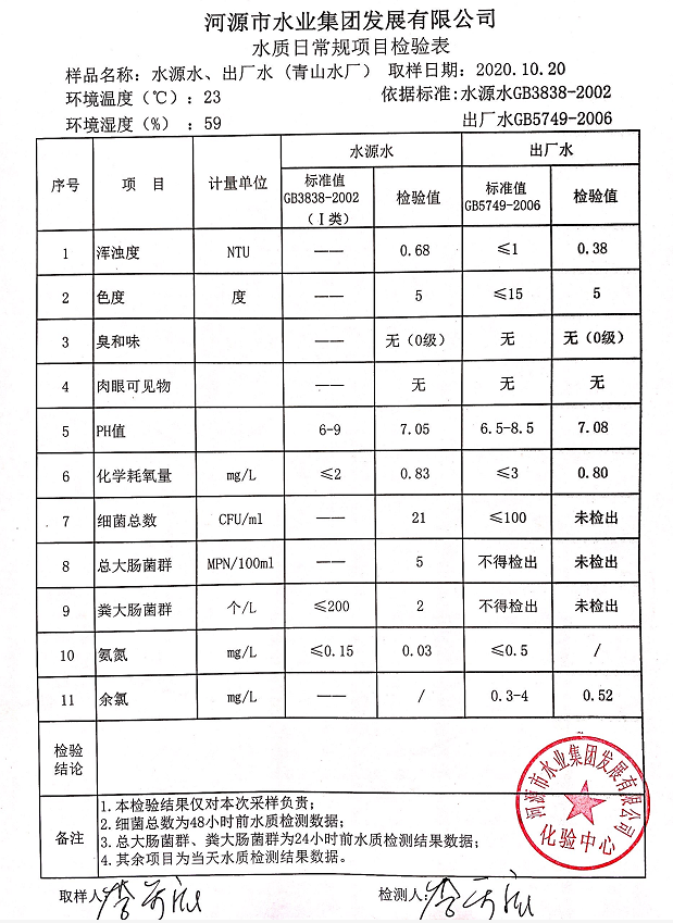 2020年10月20日水質(zhì)檢驗(yàn)報(bào)告