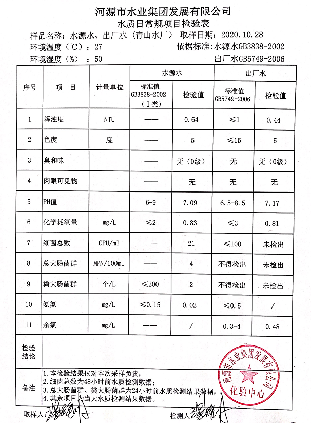 2020年10月28日水質(zhì)檢驗(yàn)報(bào)告