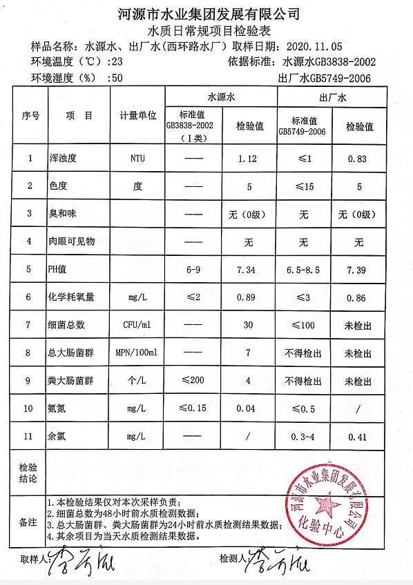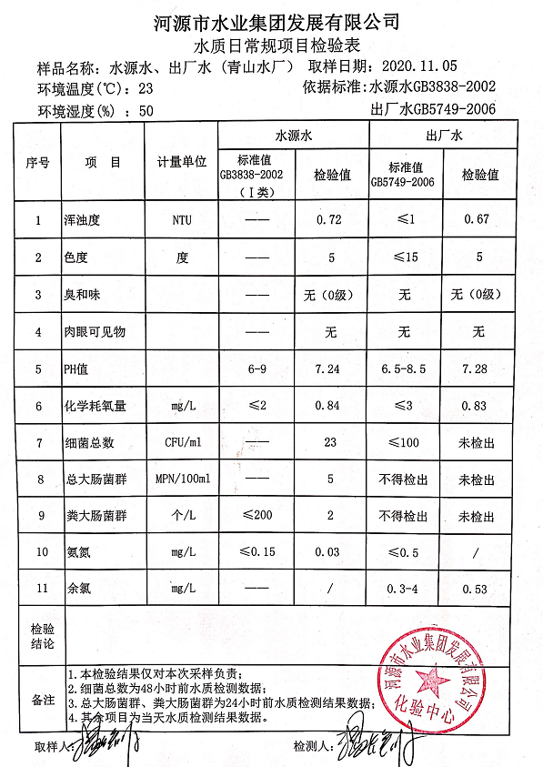 2020年11月5日水質(zhì)檢驗(yàn)報(bào)告