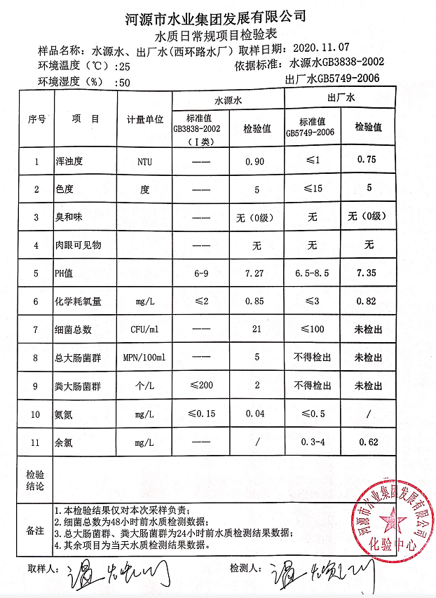 2020年11月7日水質(zhì)檢驗(yàn)報(bào)告