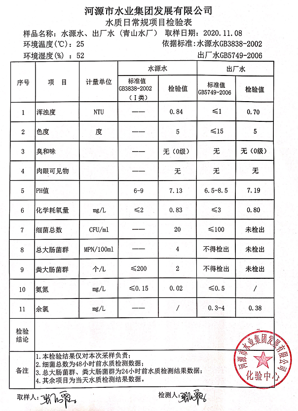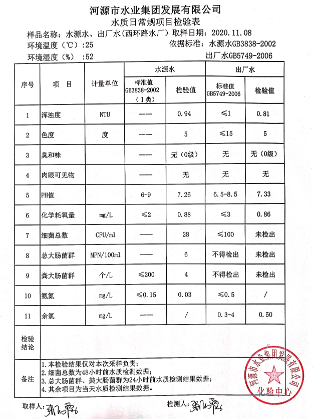 2020年11月8日水質(zhì)檢驗(yàn)報(bào)告