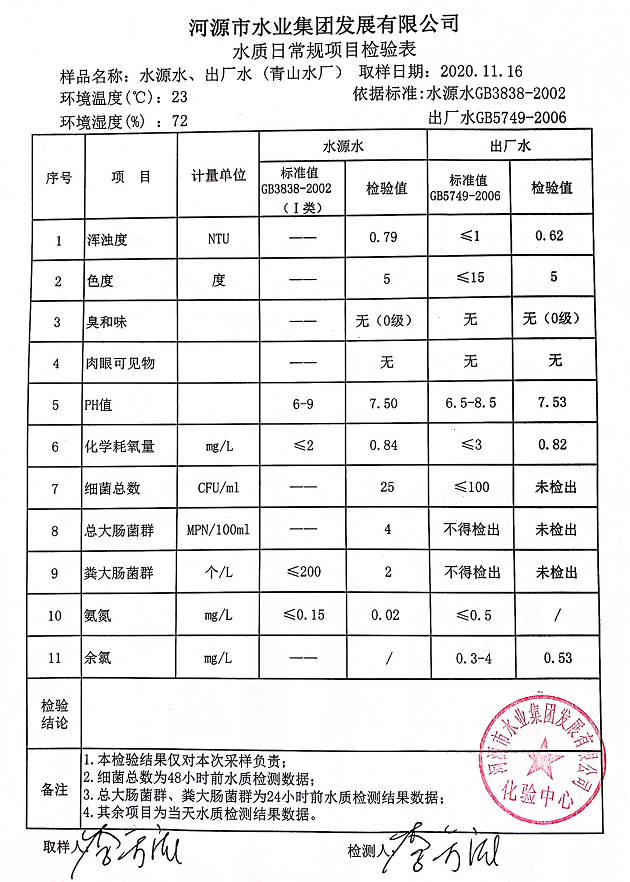 2020年11月16日水質(zhì)檢驗(yàn)報(bào)告