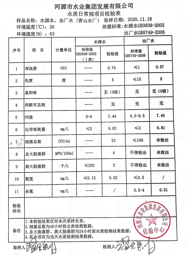 2020年11月18日水質(zhì)檢驗(yàn)報(bào)告