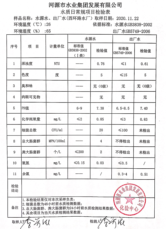 2020年11月22日水質(zhì)檢驗報告