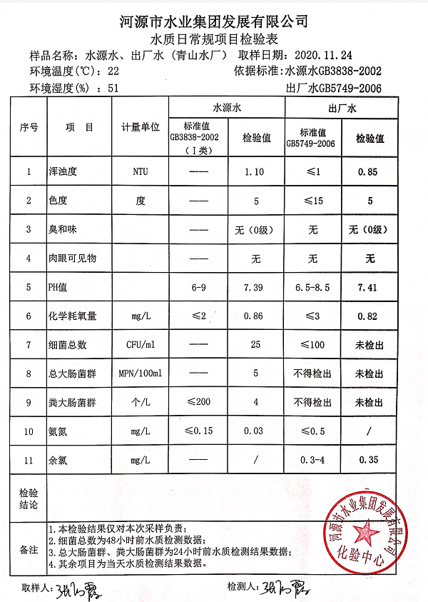 2020年11月24日水質(zhì)檢驗報告