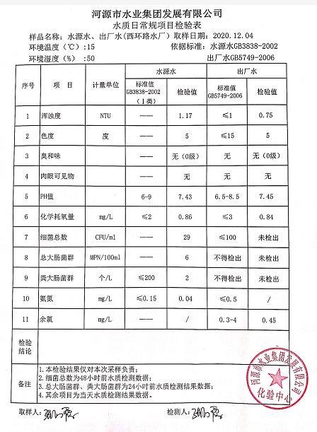 2020年12月4日水質(zhì)檢驗(yàn)報(bào)告