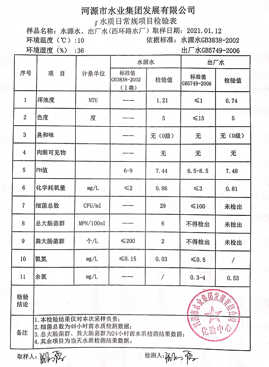 2021年1月12日水質(zhì)檢驗(yàn)報(bào)告