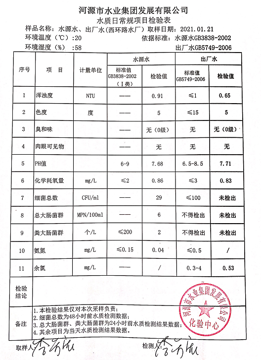 2021年1月21日水質(zhì)檢驗(yàn)報(bào)告