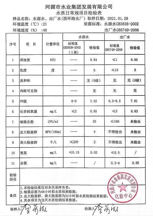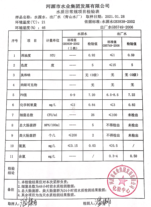 2021年1月28日水質(zhì)檢驗(yàn)報(bào)告