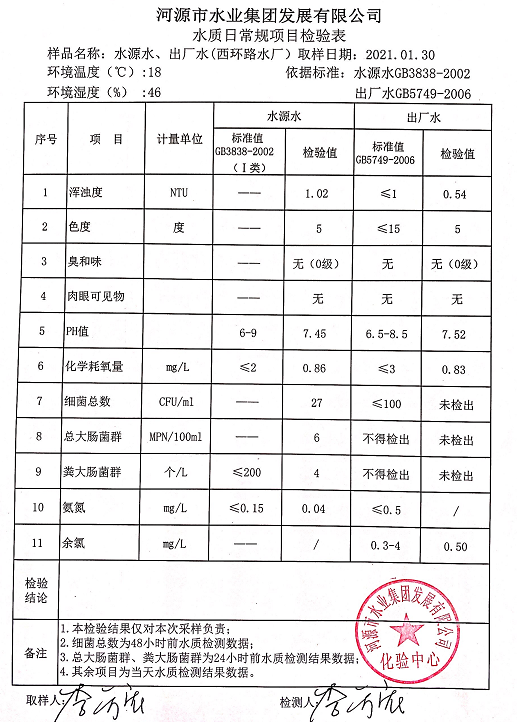2021年1月30日水質檢驗報告