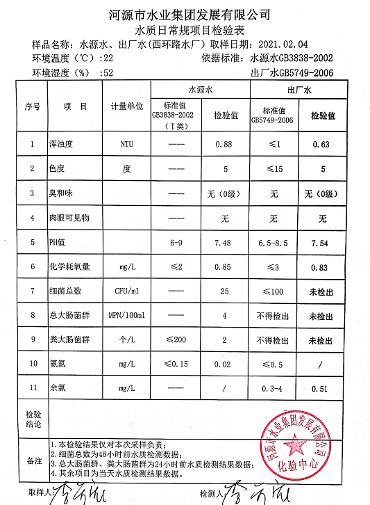2021年2月4日水質(zhì)檢驗(yàn)報告
