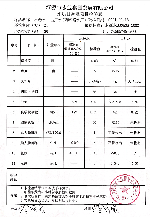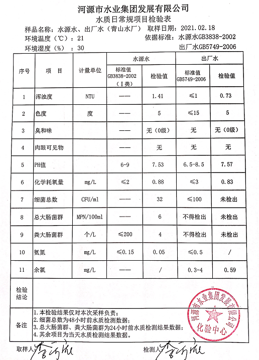 2021年2月18日水質(zhì)檢驗(yàn)報(bào)告