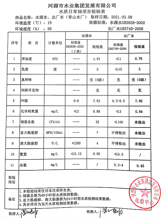 2021年3月8日水質(zhì)檢驗(yàn)報(bào)告