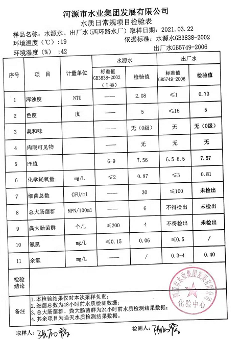 2021年3月22日水質(zhì)檢驗(yàn)報(bào)告