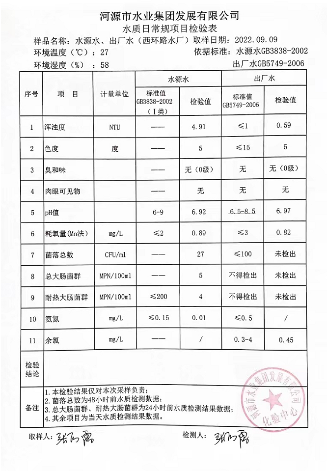 2022年9月9日水質(zhì)檢驗(yàn)報告