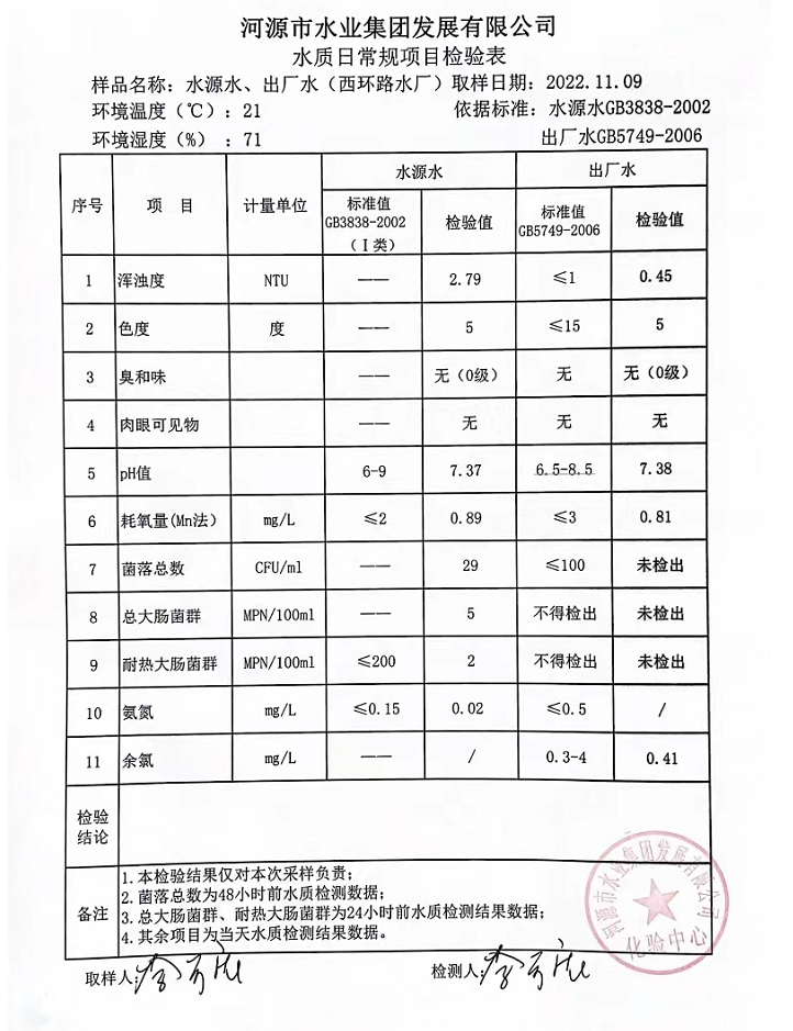 2022年11月9日水質(zhì)檢驗報告