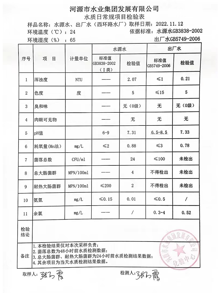 2022年11月12日水質檢驗報告
