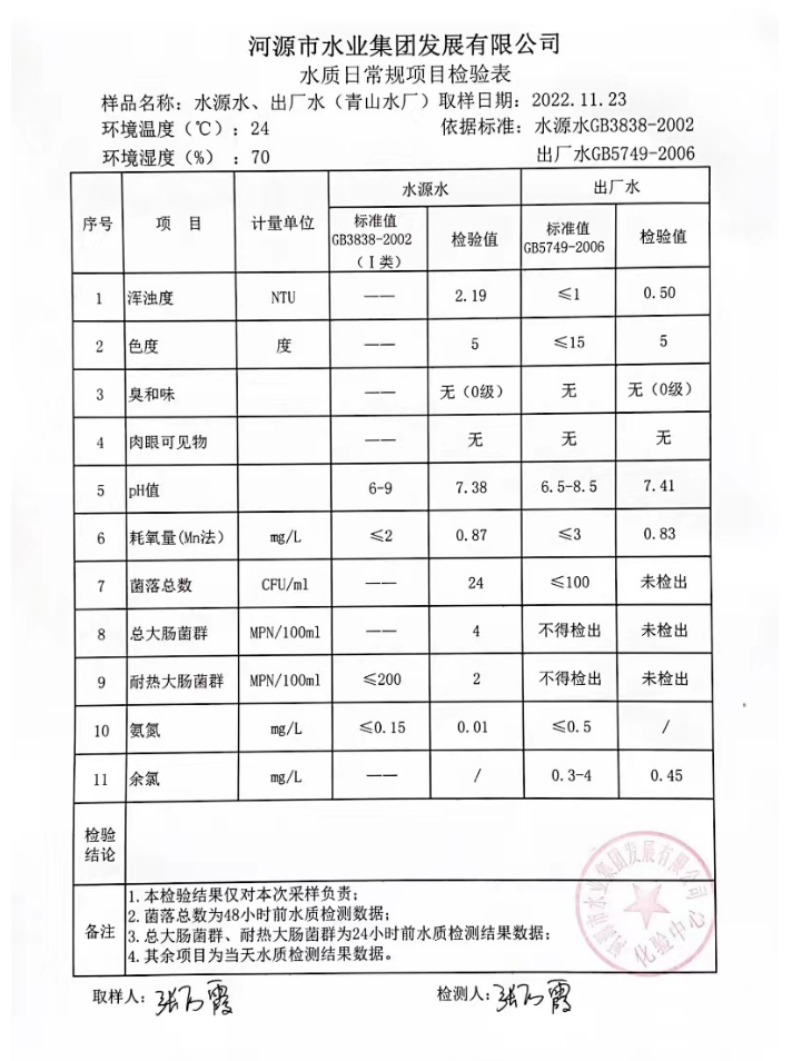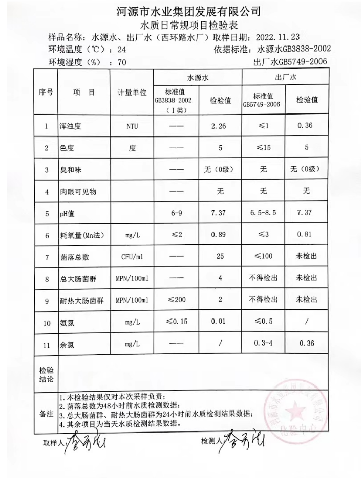 2022年11月23日水質(zhì)檢驗(yàn)報(bào)告