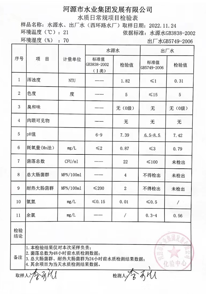 2022年11月24日水質(zhì)檢驗(yàn)報告
