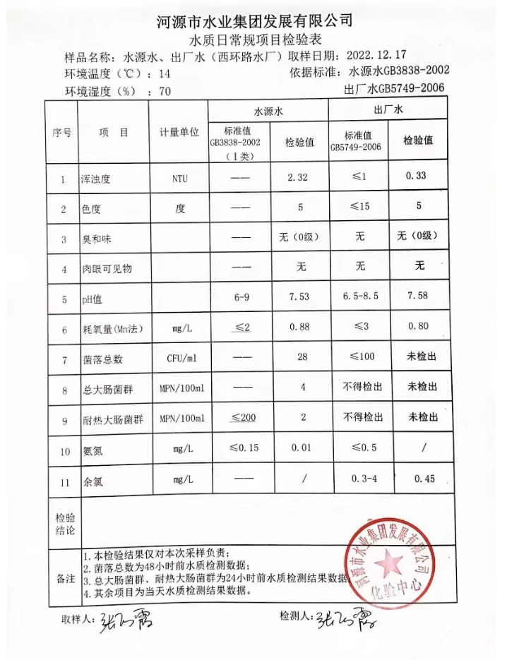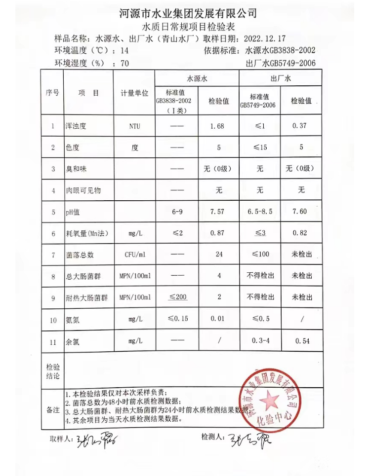 2022年12月17日水質(zhì)檢驗(yàn)報告