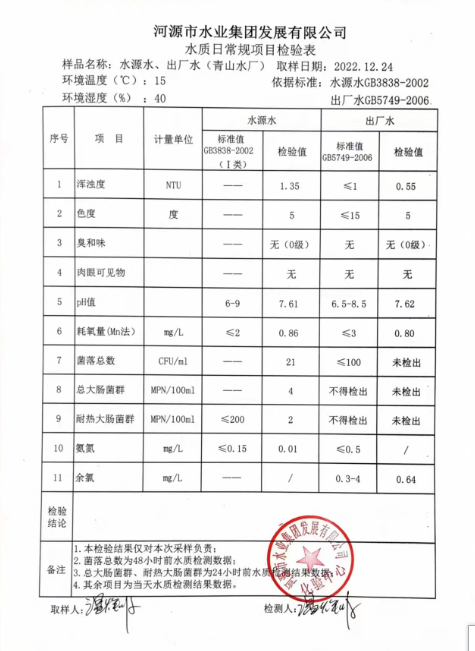 2022年12月24日水質(zhì)檢驗(yàn)報(bào)告