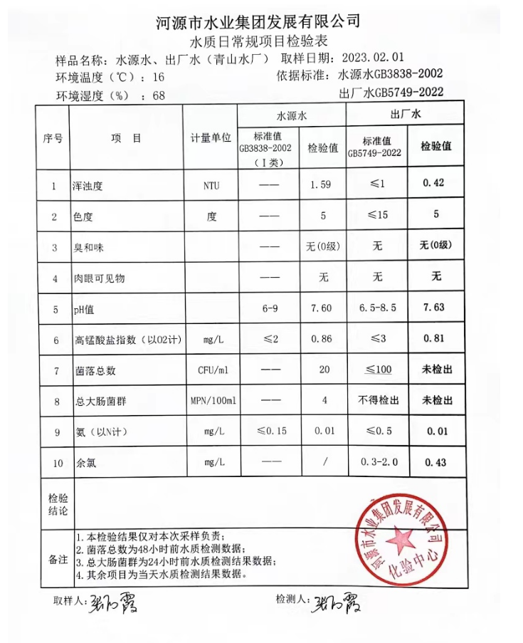 2023年2月1日水質(zhì)檢驗報告