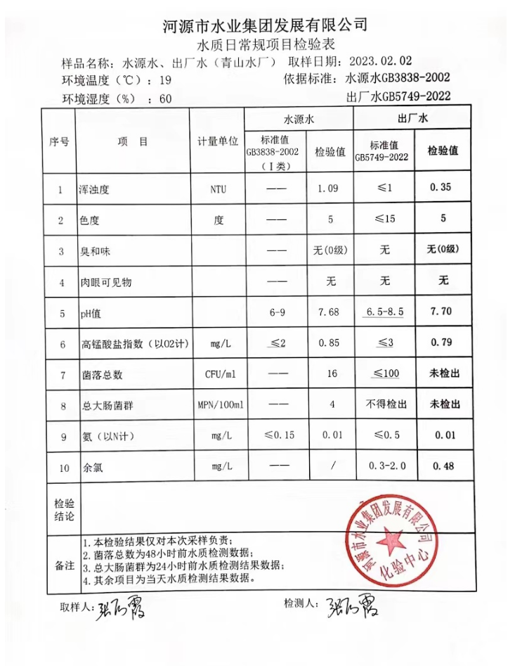 2023年2月2日水質(zhì)檢驗(yàn)報(bào)告