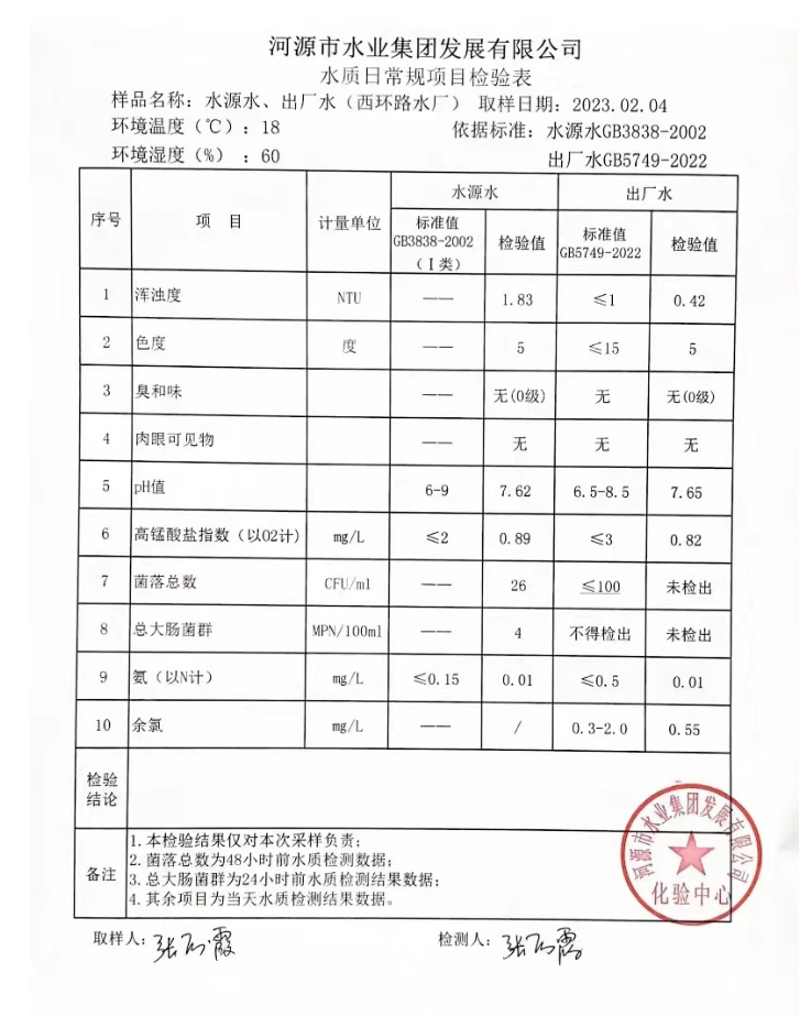 2023年2月4日水質(zhì)檢驗(yàn)報告