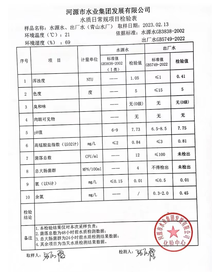 2023年2月13日水質(zhì)檢驗(yàn)報告