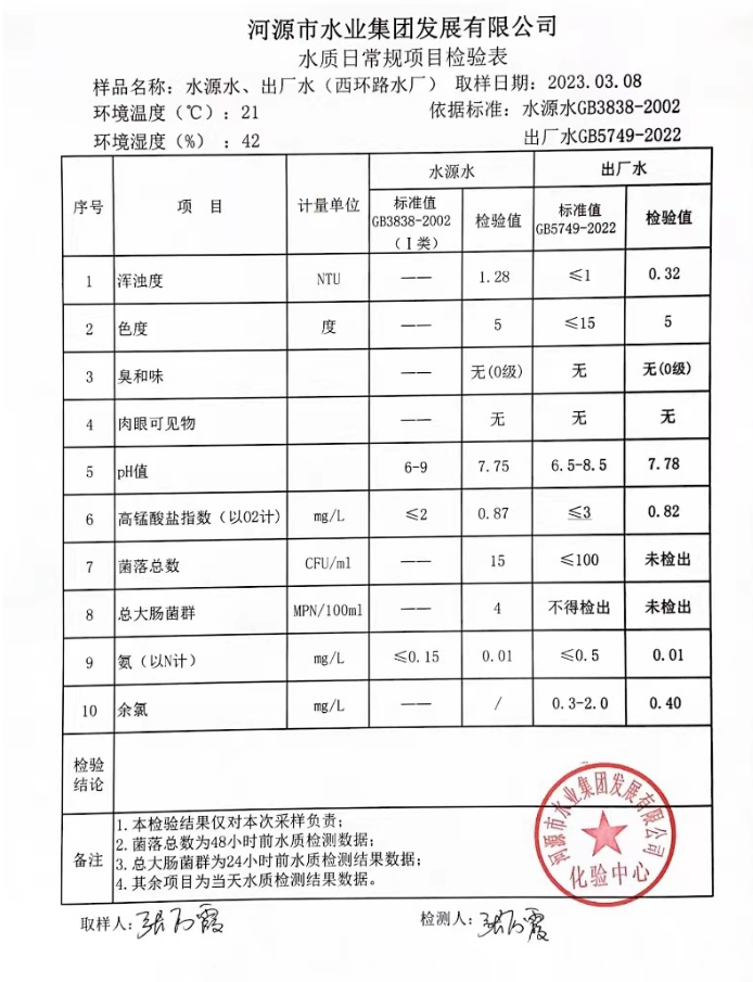 2023年3月8日水質(zhì)檢驗報告