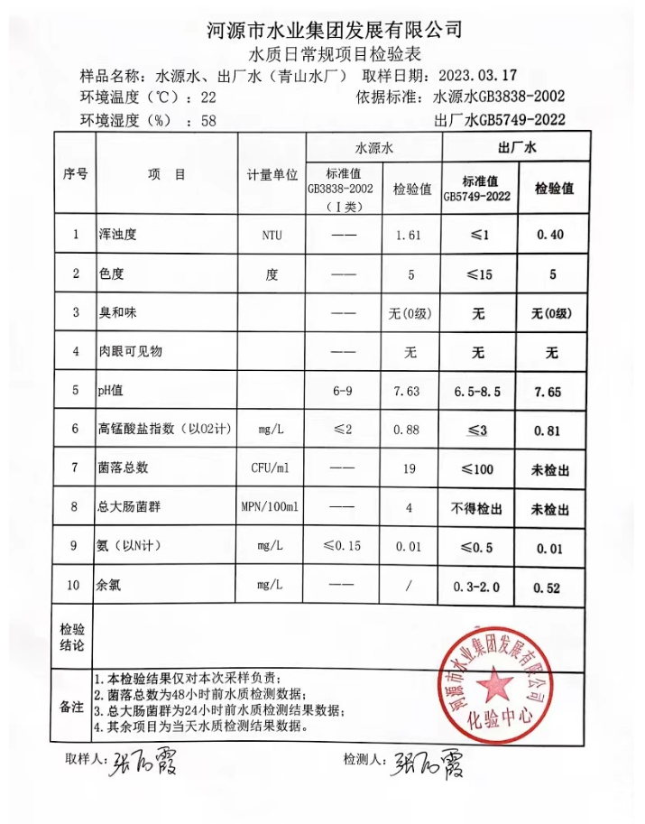 2023年3月17日水質(zhì)檢驗(yàn)報(bào)告