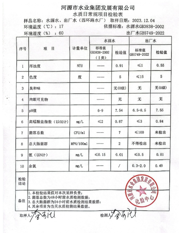 2023年12月4日水質(zhì)檢驗(yàn)報(bào)告 ???