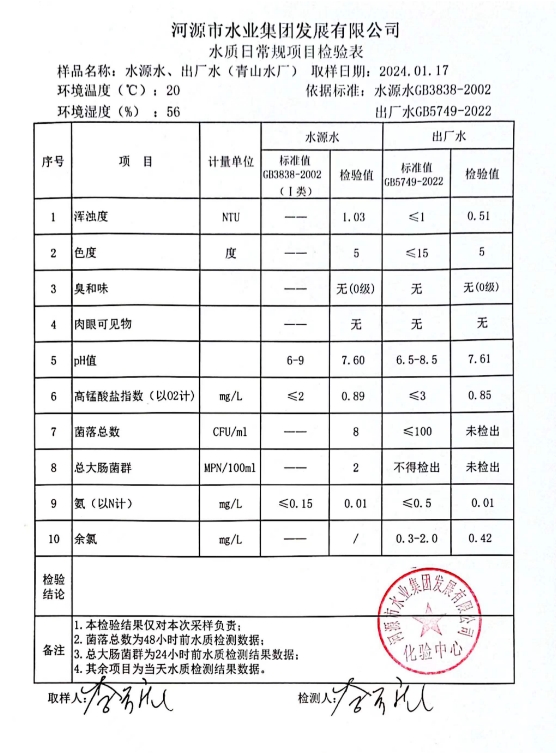 2024年1月17日水質(zhì)檢驗(yàn)報(bào)告 ???