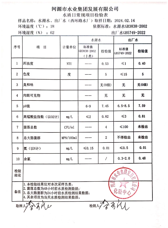 2024年2月14日水質(zhì)檢驗(yàn)報(bào)告 ???