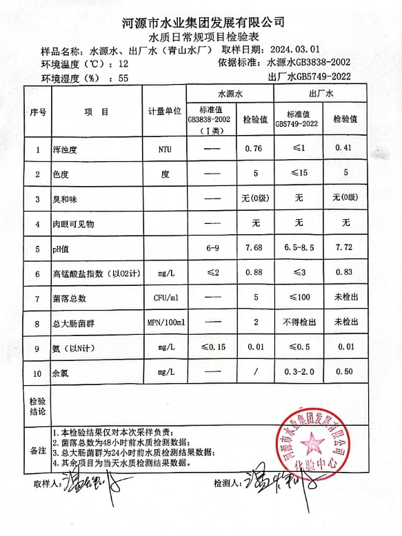 2024年3月1日水質(zhì)檢驗(yàn)報(bào)告 ???
