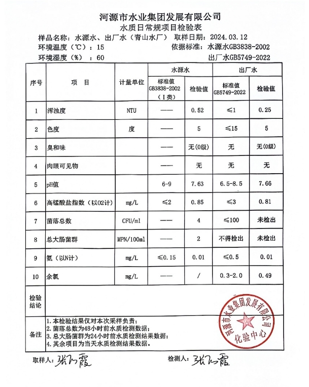 2024年3月12日水質(zhì)檢驗(yàn)報告 ???