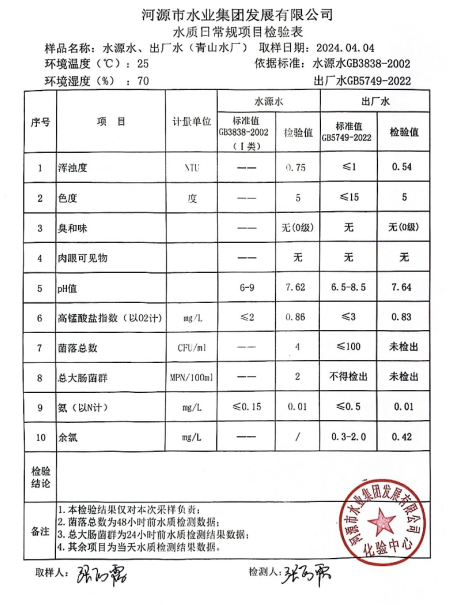 2024年4月4日水質(zhì)檢驗報告