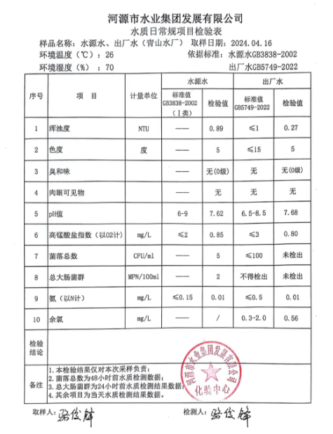 2024年4月16日水質(zhì)檢驗(yàn)報(bào)告