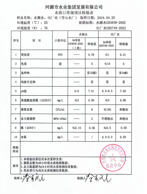 2024年4月20日水質(zhì)檢驗(yàn)報(bào)告