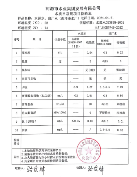 2024年4月21日水質(zhì)檢驗(yàn)報(bào)告